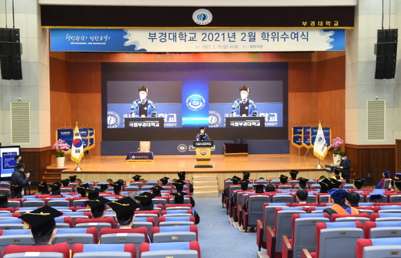 부경대학교는 19일 오전 10시 30분 대학극장에서 ‘2021년 2월 학위수여식’을 개최했다. 이번 졸업생은 학부 2991명, 석사 222명, 박사 85명 등 3298명이다.
