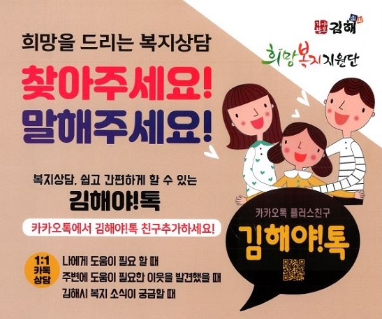 경남 김해시는 익명으로 복지 상담이 가능한 카카오톡 '김해야! 톡'을 적극 홍보해 복지사각지대를 발굴한다고 19일 밝혔다.