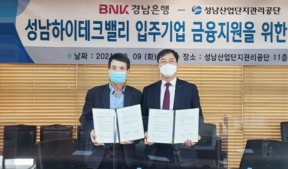 BNK경남은행은 성남산업단지관리공단과 ‘성남하이테크밸리 입주기업 금융지원을 위한 업무 협약’을 체결했다고 22일 밝혔다.