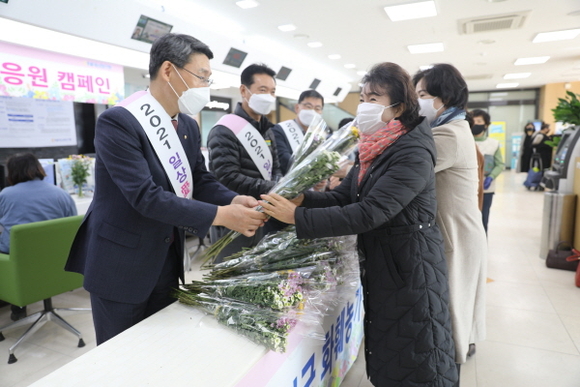 NH농협은행 경남본부는 지난 19일 창원시지부를 방문하는 고객을 대상으로 화훼농가 응원 캠페인 행사를 진행했다.