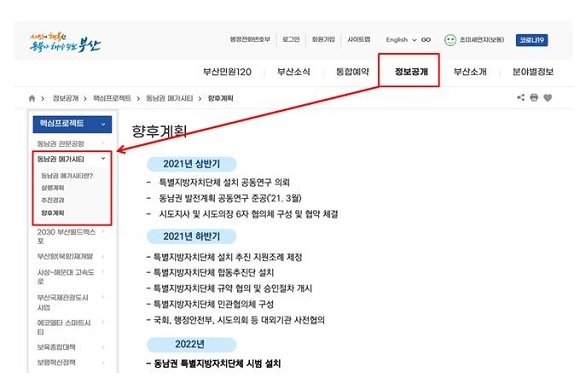 부산시가 오늘(23일)부터 ‘동남권 메가시티’에 대한 시민 이해와 관심도 제고를 위해 부산시 공식 홈페이지 내 동남권 메가시티 게시판을 신설해 운영한다고 발표했다.