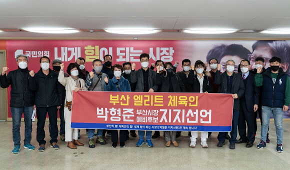 부산지역 엘리트 체육인들이 지난 22일 늦은 오후 박형준 부산시장 예비후보(국민의힘) 캠프를 방문해 적극 지지를 표명했다.
