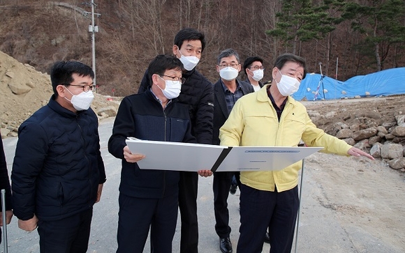 이재근 산청군수가 해빙기를 맞아 재난취약 지역과 대형사업장을 돌며 현장 공사 담당자에게 안전사고 예방과 성실시공을 당부했다.