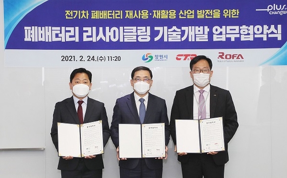 경남 창원시는 24일 센트랄그룹 본사에서 급성장 중인 전기차 시장을 대비해 관내 기업인 ㈜센트랄, ㈜ROFA와 전기차 폐배터리 재사용·재활용 산업 기술·연구 개발을 위한 업무협약(MOU)을 체결했다.