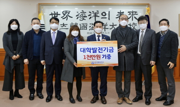 한국해양대학교는 글로벌물류대학원 교수진(김율성 원장, 신영란 부원장, 김환성 교수, 김치열 교수)이 대학발전기금 1000만원을 최근 대학본부 3층 총장접견실에서 전달했다고 밝혔다.
