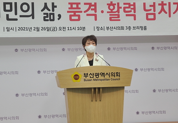 이언주 부산시장 예비후보(국민의힘)가 26일 오전 11시경 부산시의회 브리핑실에서 기자회견을 열고 그의 9번째 공약으로 문화, 예술, 관광, 체육 분야 정책에 대해 발표했다.