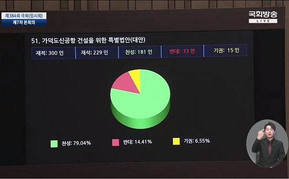 지난 20년 가까이 논의를 끌었던 부산, 울산, 경남지역의 신공항 입지가 ‘가덕도’로 확정됐다. 국회는 26일 제284회 임시회 7차 본회의를 열고 ‘가덕신공항 특별법’ 등의 법안을 처리했다. 특히 가덕신공항 특별법이 재적 300인, 재석 229인, 찬성 181인, 반대 33인, 기권 15인으로 79.04%의 표를 얻어 최종 통과했다.