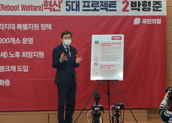 박형준 부산시장 예비후보(국민의힘)가 2일 오전 10시 부산시의회 브리핑실에서 기자회견을 열고 그의 8번째 공약으로 ‘복지 강화’ 정책에 대해 발표했다.