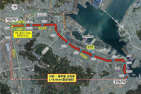 부산시는 ‘중앙대로 서면~충무’ BRT 구간 공사를 시행할 업체를 지난해 11월 선정한 데 이어 사전절차를 모두 마치고 이달부터 해당 구간 7.9㎞에 BRT 공사를 돌입한다고 3일 발표했다.