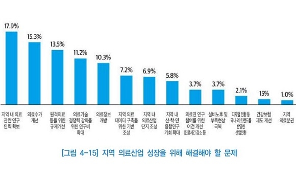 이 보고서에 따르면 디지털 의료산업의 핵심 역할을 하게 되는 의료기관의 경우 부산은 전국에서 세 번째로 많은 부분을 차지하고 있다. 이어 부산은 4개의 대학병원을 중심으로 한 의료자원이 풍부하다는 강점을 지닌 반면 디지털 의료산업의 축을 담당하는 ‘의료기기’ ‘바이오’ ‘제약기업’의 기반은 미흡하다고 지적했다.
