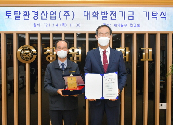 이번 기탁식은 창원대 이호영 총장과 김종철 대학발전협력원장, 토탈환경산업(주) 정선태 대표이사가 참석한 가운데 진행됐다.