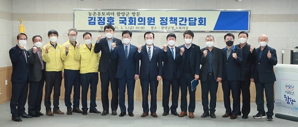 함양군에 따르면 지난 5일 군을 찾은 김정호 의원은 서춘수 함양군수와 환담을 나눈 후 군의 다양한 현안사항 및 건의사항 등 현장의 목소리를 청취했다.
