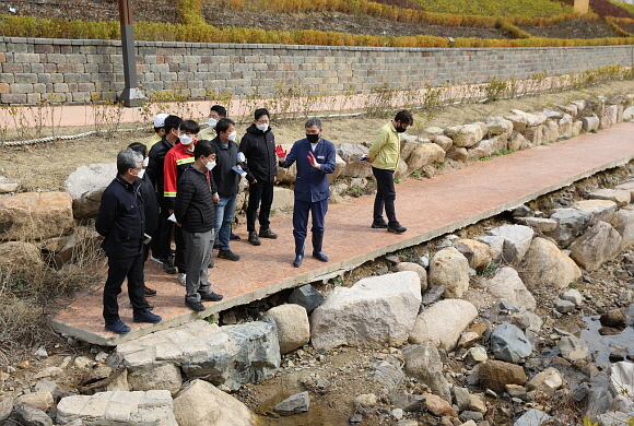 이날 오규석 군수를 비롯한 기장군 간부들은 삼성천 정비사업 현장과 삼성천 장미 테마길 조성 현장을 점검했다.