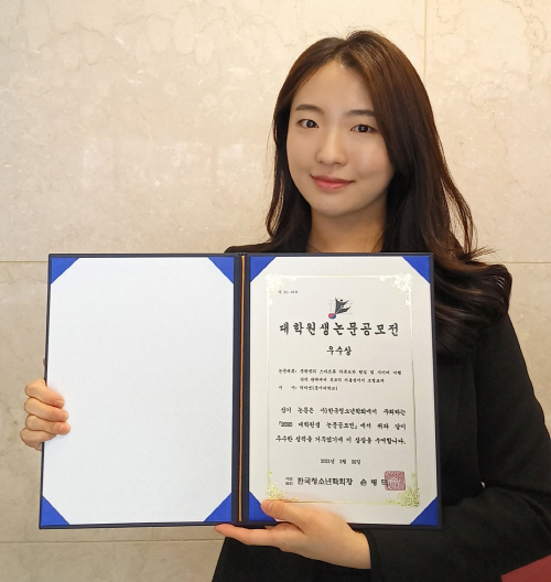 또 “하고 싶은 연구를 했는데 뜻깊은 상까지 받아 기쁘고 영광스럽다”며 “연구 역량을 키울 수 있도록 가르침을 주시고 항상 지지와 응원을 보내주신 조규판 교수님께 감사의 마음을 전한다. 앞으로 더욱 학문에 정진해 발전하는 모습 보여 드리겠다”고 말했다.