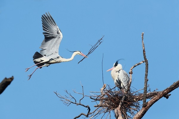 포근한 날씨를 보인 9일 경남 함양군 한 왜가리 서식지에서 왜가리가 봄 햇살을 받으며 분주하게 둥지를 만들고 있다. (사진=함양군 제공)