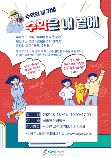 허남영 관장직무대행은 “안전한 행사 개최를 위해 방역에 만전을 다하고 있다”며 “수학을 쉽고 재밌게 즐길 수 있는 이번 행사에 많은 관심과 참여 바란다”고 말했다.