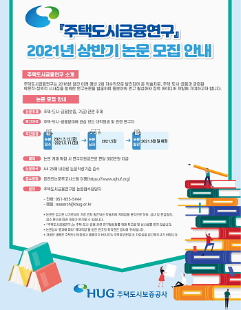 주택도시보증공사(HUG)가 올 상반기 ‘주택도시금융연구’ 학술지에 게재할 논문을 공모한다고 11일 공고했다.