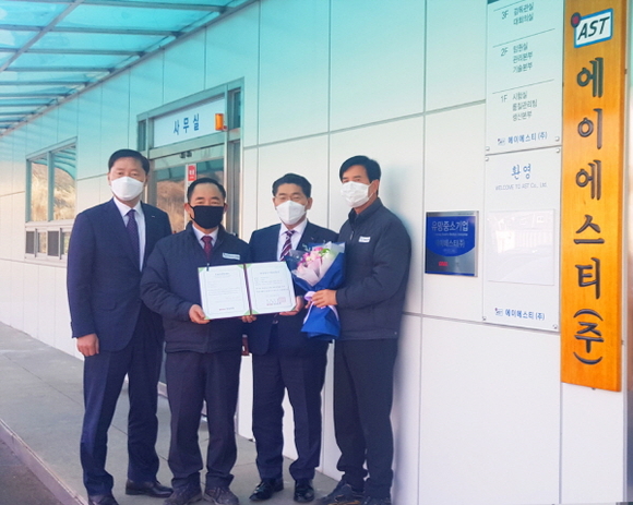 한편, 이날 김백용 상무는 직원들과 함께 유망중소기업에 선정된 에이에스티㈜를 방문해 별도 제작한 현판과 인증서를 교부했다.
