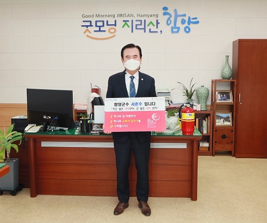 서춘수 함양군수가 11일 소화기·화재경보기 등 소방시설의 설치를 통한 화재 예방과 화재에 대한 경각심 고취를 위한 '화재안전 119 릴레이' 챌린지에 동참하고 군민의 안전을 기원했다.