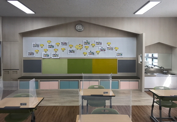 대부분의 학교에는 초등학교 1학년 교실 전면에 학생의 키높이에 맞춰 다용도로 사용 가능한 칠판을 설치했으며 칠판 밑에 수납장을 만들어 각종 교구 등을 보관할 수 있게 했다. 특히 코로나19 사태로 인한 개인 방역을 위해 ‘손 씻기’ 등을 생활화하도록 개수대를 교실 내에 설치했다.