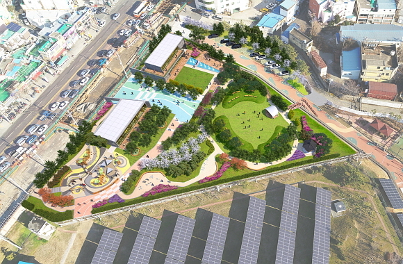 새 단장에 들어가는 감천 나누리파크에는 어린이 놀이터, 생활체육시설, 산책로, 야외무대가 갖춰진 공원 및 키즈카페와 북카페 2개동이 건설될 예정이다.