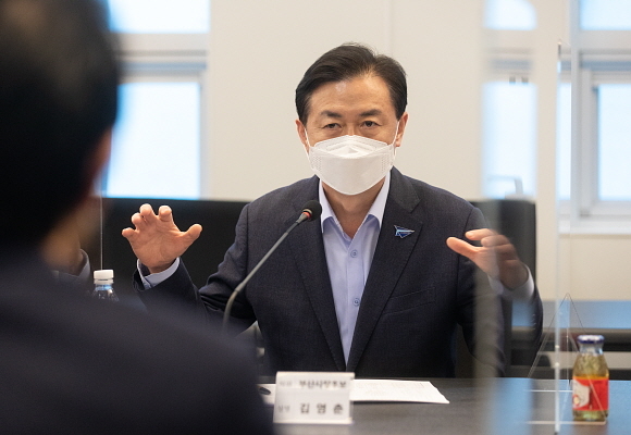 김영춘 후보는 이날 간담회에서 “국내 수출입 화물의 0.5%만이 항공기를 통해 운반되는데 이를 가격으로 환산하면 국내 화물의 30% 수준에 달한다”며 “그러나 부산에는 큰 비행기가 비행하지 못하니 각종 첨단 기업들이 이 핑계 대고 오질 않는다”고 문제점을 짚었다.