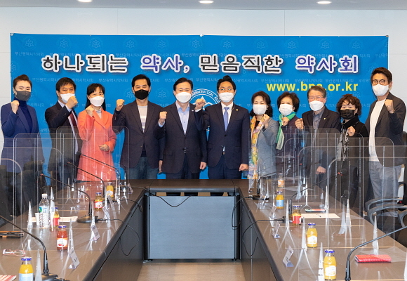 김영춘 부산시장 후보(더불어민주당)가 17일 부산시약사회를 찾아 변정석 회장, 신찬용 사무국장 등과 함께 간담회를 열고 부산지역 바이오헬스 산업의 발전 방안을 논의했다고 밝혔다.
