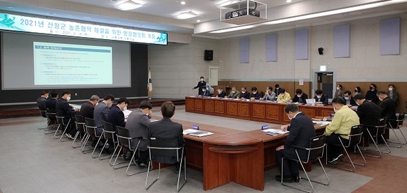 18일 군은 군정회의실에서 권양근 부군수와 각 실국소과장 등이 참석한 가운데 '2021년 산청군 농촌협약 체결을 위한 행정협의회'를 개최했다.