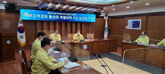경남 밀양시는 18일 시청 소회의실에서 코로나19 위기극복을 위한 지역경제 활성화 특별대책 추진 보고회를 가졌다.