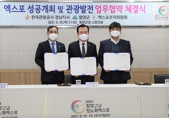 이번 협약을 통해 함양군은 조직위와 관광공사간 긴밀한 협조체계를 구축해 엑스포 홍보, 관람객 유치, 관광활성화를 위한 콘텐츠 발굴 및 공동마케팅 등 성공적인 엑스포 개최를 위한 계기를 마련했다.