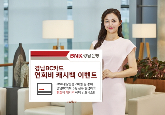 BNK경남은행모바일뱅킹 앱, 모바일 웹, 인터넷뱅킹을 통해 ANY카드, 요즘쇼핑카드, 플러스알파카드, NEW단디카드, 2030플래티늄카드 등 경남BC카드 5종을 신규 발급 후 5만원 이상 이용하면 연회비 캐시백 혜택을 제공한다.