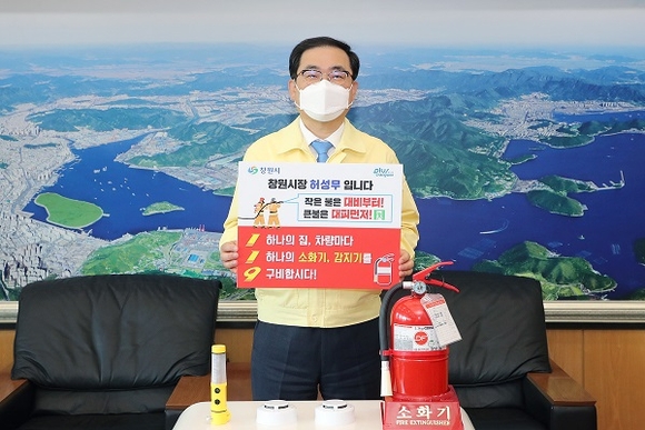 허성무 창원시장이 23일 화재로 인한 인명피해를 줄이기 위해 각 가정과 차량에 소화기와 감지기 구비를 권장하는 '화재안전 119 릴레이' 챌린지에 동참했다.