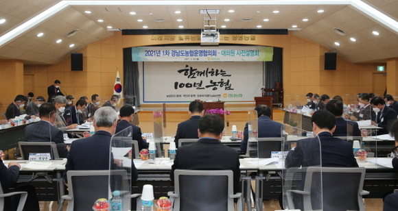 경남농협은 지난 22일 지역본부 대회의실에서 NH농협금융지주 회장, 중앙회 이사와 대의원 조합장이 참석한 가운데 ‘경남도농협운영협의회 및 대의원 사전설명회’를 개최했다.