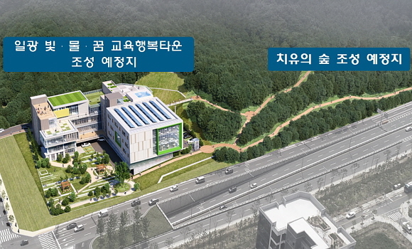 아울러 교육행복타운 주변 원형지 보전 지역에는 시설과 연결되는 나뭇꾼길 산책로가 조성돼 아동, 청소년과 주민들의 힐링 공간이 될 ‘치유의 숲’을 조성할 계획이다.