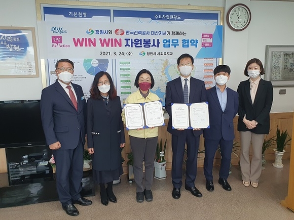 경남 창원시는 24일 한국전력공사 마산지사와 '기업과 함께하는 WIN WIN 자원봉사 협약식'을 가졌다.