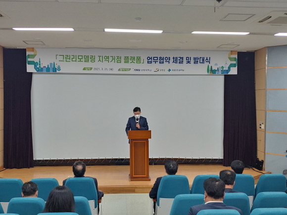 국토안전관리원은 한국판 뉴딜의 핵심사업인 공공건축물 그린리모델링 사업의 기반 강화 및 활성화를 위한 그린리모델링 지역거점 플랫폼 강원권 발대식이 25일 춘천시에 있는 강원대학교에서 열렸다고 밝혔다.