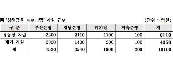 계열사별로는 부산은행이 4520억원으로 가장 금액이 크며 이어 경남은행 3540억원, BNK캐피탈 1900억원, BNK저축은행이 200억원을 각각 지원한다.