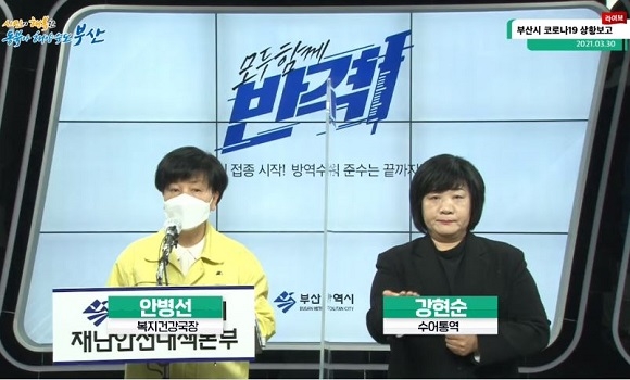 부산시 안병선 복지건강국장은 “최근 확진자 비중이 커지고 있는 유흥업소 관련해 오늘 종사자 7명과 이용자 10명, 접촉자 9명이 추가 확진돼 지금까지 확진자는 이용자 38명, 종사자 36명, 접촉자 35명이 확진됐다. 또 집단감염이 발생한 연제구 소재 복지센터는 정기 추적검사 결과, 이용자 7명, 종사자 1명이, 또 관련 접촉자 5명이 확진돼 지금까지 종사자 8명, 이용자 26명, 접촉자 13명이 확진됐다”며 “백신 접종 현황은 어제 오후 9시까지 일일 2616명이 접종했으며 1차는 2572명, 2차는 44명으로 1차 접종률 68.9%, 2차 접종률 0.2%를 기록했다. 다만 어제 이상반응 신고가 8건 들어왔는데 7건은 발열, 근육통 등 일반 증상을 보인 반면 1건은 사망사례로 보건당국은 인과성 여부 판단을 위한 조사에 들어간 상황이다”라고 설명했다.