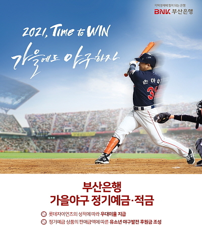 올해는 정기예금에 더해 적금 출시를 원하고 있는 고객의 수요를 반영해 신상품인 ‘부산은행 가을야구 정기적금’도 출시한다.
