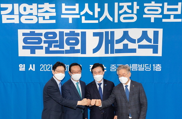 4.7 부산시장 보궐선거가 일주일 남짓 남은 31일, 김영춘 후보의 후원회 사무소가 이날 오후 개소한 가운데 이재명 경기도지사가 참석해 김영춘 후보에 힘을 실었다.