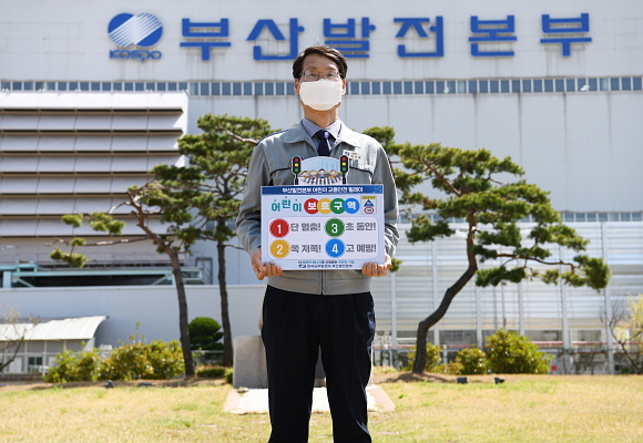 한국남부발전㈜ 이기우 부산발전본부장이 최근 ‘어린이 교통안전 릴레이 챌린지’에 참여해 피켓을 들고 인증샷을 찍고 있다.