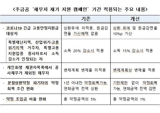 한국주택금융공사(주금공)가 코로나19 사태 등으로 어려움이 가중된 채무자의 상환 부담을 줄이고 경제적 회생을 돕기 위해 오는 6월 말까지 ‘채무자 재기 지원 캠페인’을 진행한다고 1일 밝혔다.