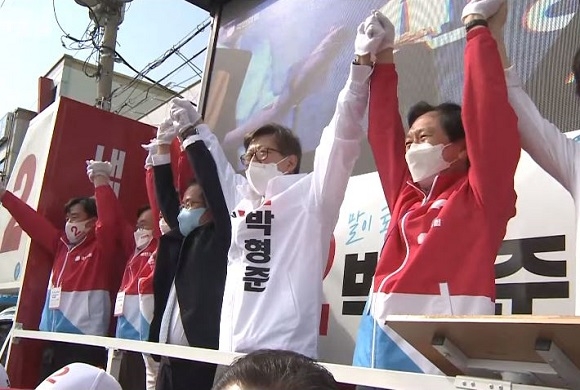 이날 박형준 후보와 홍준표 전 당대표는 이번 재보궐 선거를 통해 정부를 심판해야 한다는 ‘정권심판론’을 대대적으로 앞세웠다.