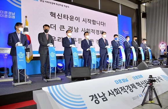 경남도가 1일 창원시 의창구 대원동에 있는 한국산업단지공단 동남전시장에서 '경남 사회적경제 혁신타운' 조성공사 착공식을 열었다.