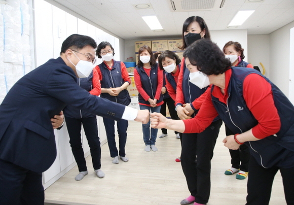 오후에는 청소, 기계설비, 운전, 문서수, 안전 등을 맡아 처리하는 용역직원 휴게실, 대기실 등을 찾아가 고마움을 전하고 감사의 마음을 담은 선물을 전달했다.