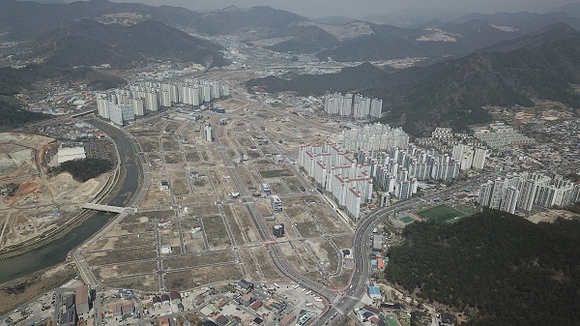 전체 면적별 분포를 보면 단독주택, 공동주택, 준주거, 상업용지는 1199필지 85만 2035㎡로 조성됐으며, 시장용지 1필지 2만 8898㎡, 학교용지 3필지 3만 6168㎡, 공공청사 2필지 2500㎡이다.