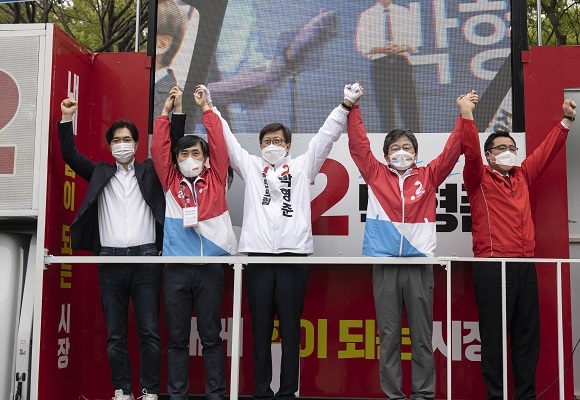 그러면서 "사흘 전에는 금태섭 의원이 다녀갔고 이틀 전엔 안철수 대표가, 어제는 홍준표 의원이 다녀갔으며 오늘은 유승민 의원이 이곳 부산을 찾아 저를 지지하러 오셨다. 이것이 대한민국의 범보수 세력이 하나로 똘똘 뭉쳤다는 것을 상징하는 것 아니겠나"라며 "역사상 가장 부끄러운 선거에서 조용하게 정책 선거를 해도 모자랄 판에 입만 열면 거짓말이고 가짜뉴스로 네거티브를 하니 저도 정말 피곤하고 가족 보기 너무 힘들다. 투표를 안 하신 분들은 오늘 가서 꼭 투표해 주시고 오는 7일 한 분도 빠짐없이 대한민국과 부산을 위해, 이 땅에 정의를 위해 꼭 투표해 달라"고 시민들에 호소했다.