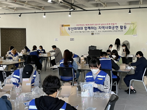 부산외국어대학교 사회기여센터는 지난달 31일 교내 재학생과 지역사회 보건 취약계층을 위해 손 소독제 만들기 봉사활동을 진행했다고 6일 밝혔다.