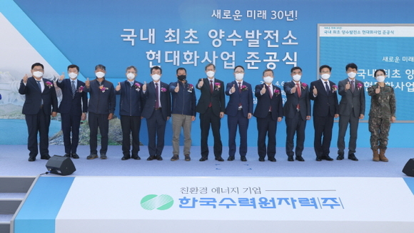 이날 준공식은 정재훈 한수원 사장, 박일호 밀양시장 등 지역 주요인사, 현대화사업 참여업체 대표, 지역주민 등 사회적 거리두기 준수를 위해 50명 미만의 인원이 참석한 가운데 진행됐다.