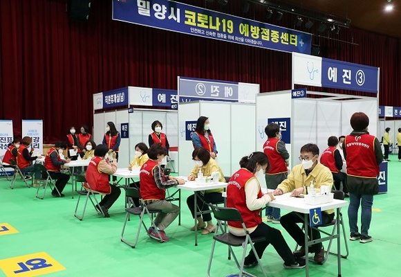 경남 밀양시는 오는 15일 개소하는 코로나19 예방접종센터의 원활한 운영을 위해 7일 밀양문화체육회관에서 예방접종 모의훈련을 가졌다.